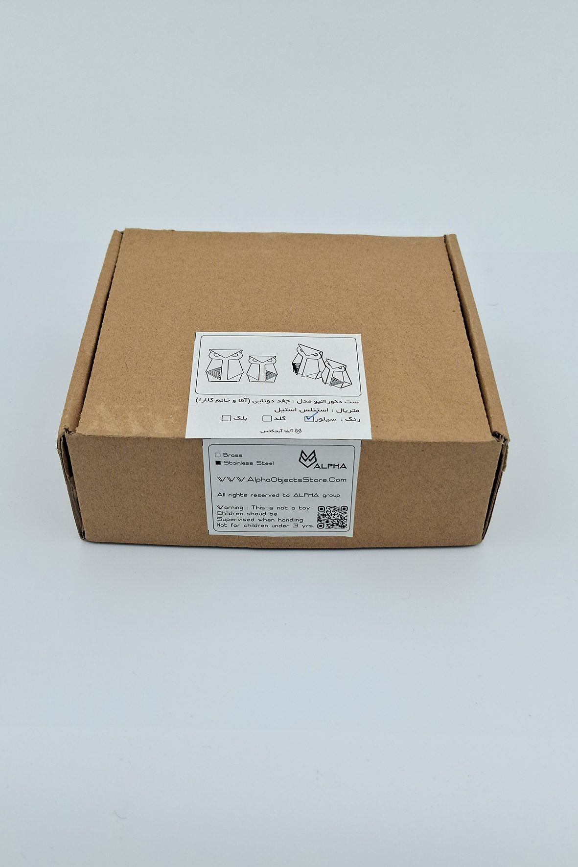 مجسمه دکوراتیو استیل آلفا مدل جغد آقاوخانم کلارا