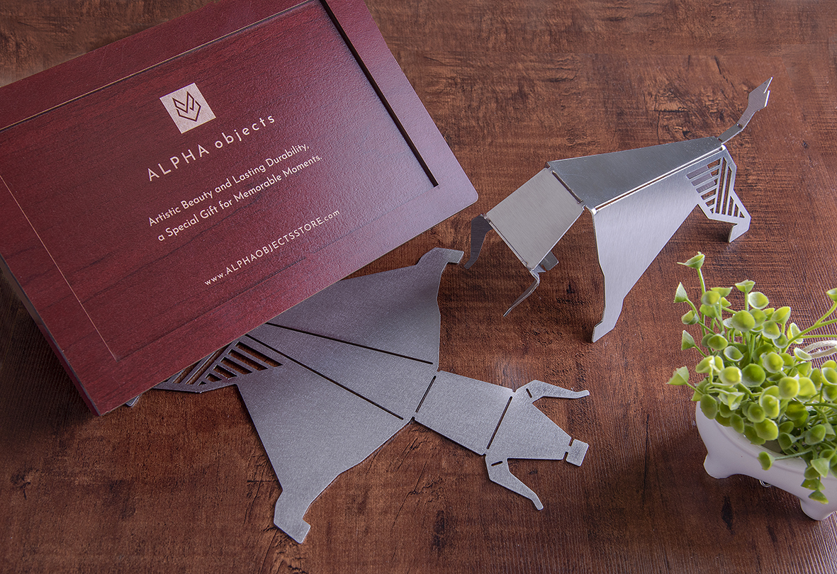 مجسمه و جاکارتی استیل آلفا مدل گاو نر ست دو عددی