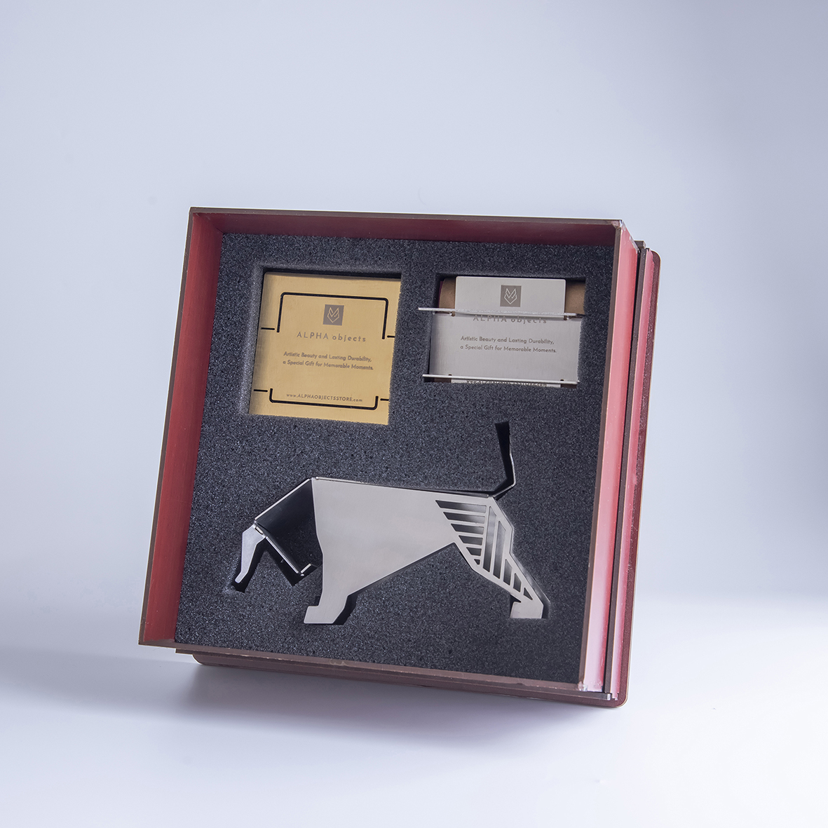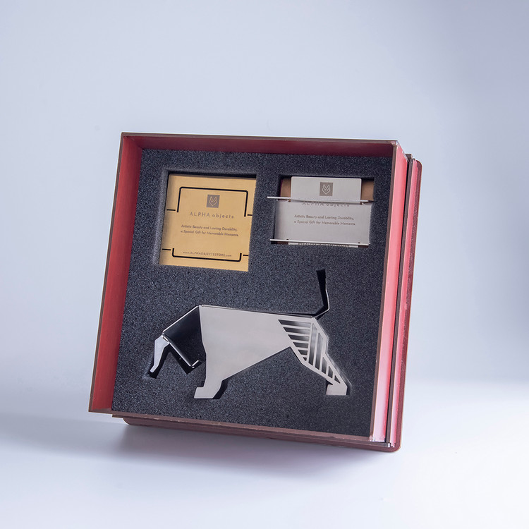 این مجسمه هندسی با الهام از گاو نر نمادین، هدیهای عالی برای افرادی است که با عزمی راسخ چالشها را میپذیرند. این مجسمه که انتخابی عالی برای تولدها، کریسمس یا روز پدر است، هدیهای ایدهآل برای شوهران، دوست پسرها، حسابداران، کارمندان بانک، سرمایهگذاران سهام و معاملهگرانی است که با سر به موانع زندگی نزدیک میشوند. این مجسمه که از آلیاژ آلومینیوم با کیفیت بالا ساخته شده، سبک و براق است و کاملاً با دکوراسیون دفاتر یا خانههای مدرن مطابقت دارد.✦ همچنین ممکن است یک پایه کارت ویزیت مناسب را بپسندید.