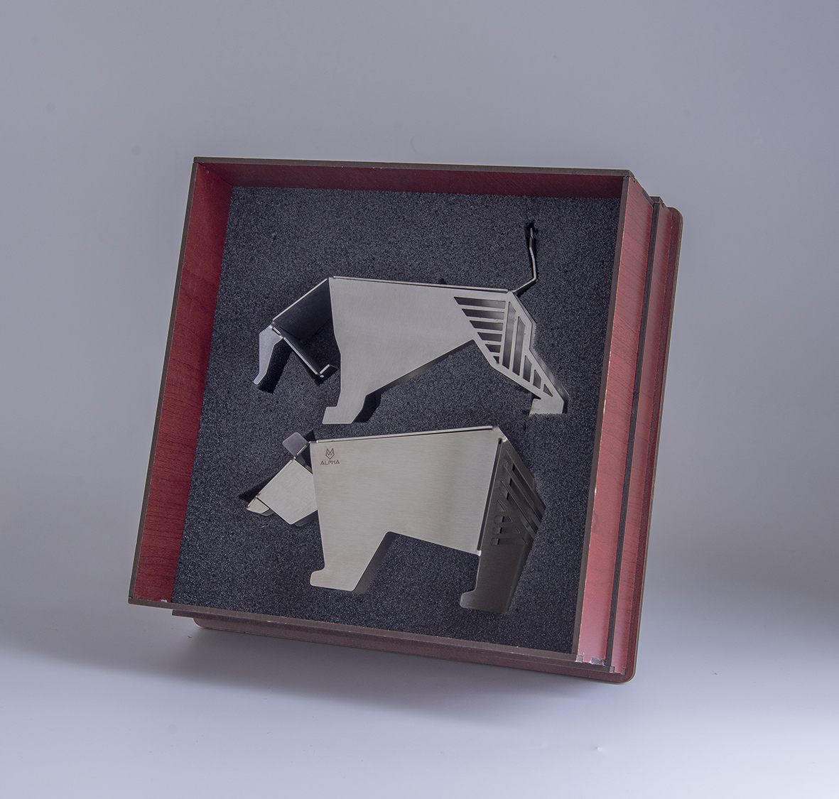 بازار سهام به عنوان بازاری صعودی یا نزولی توصیف میشود.مجسمههای گاو نر و خرس میتوانند هدایای بسیار خوبی برای سرمایهداران، اقتصاددانان، ستوننویسان مالی، کارمندان بانک یا حسابداران باشند.این مجسمهها که از آلیاژ آلومینیوم با کیفیت بالا ساخته شدهاند، سبک، براق و برای دکوراسیون دفاتر شهری یا منازل مناسب هستند.